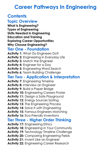 Career Pathways In Engineering Worksheet Activity Booklet