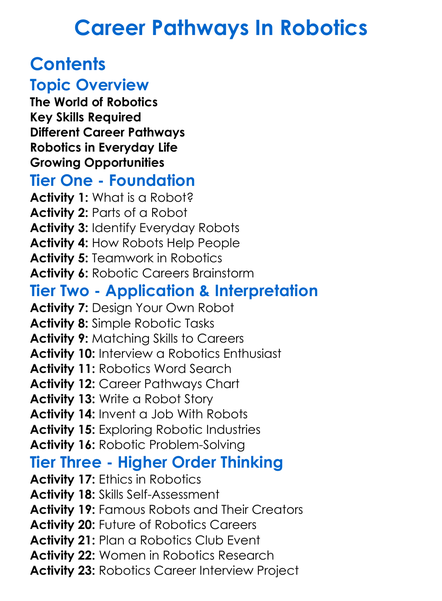 Career Pathways In Robotics Worksheet Activity Booklet