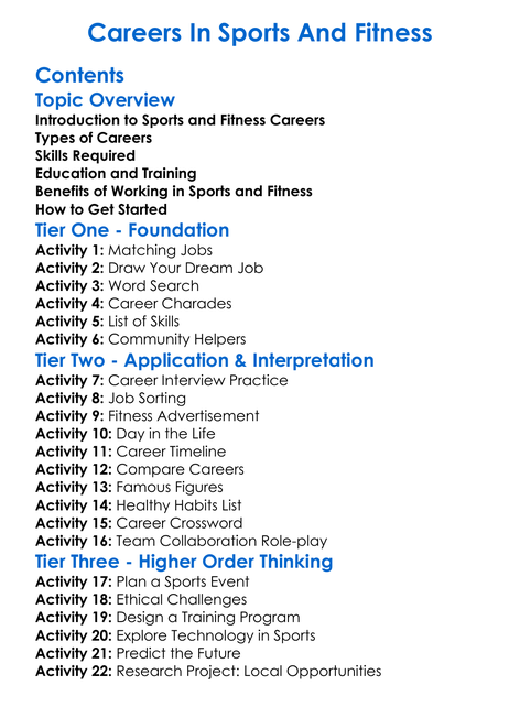 Careers In Sports And Fitness Worksheet Activity Booklet