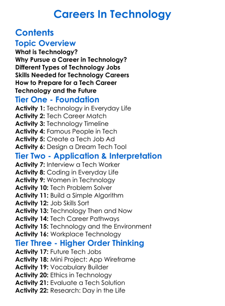 Careers In Technology Worksheet Activity Booklet