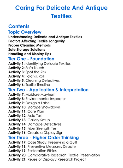 Caring For Delicate And Antique Textiles Worksheet Activity Booklet