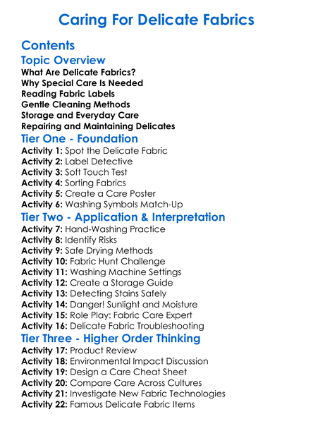Caring For Delicate Fabrics Worksheet Activity Booklet