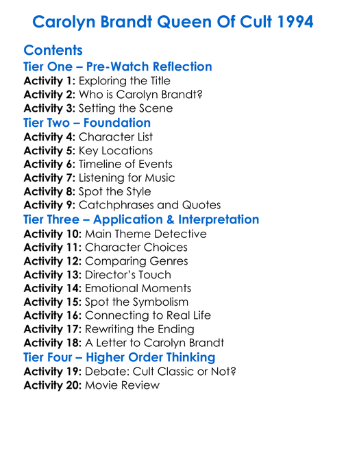 Carolyn Brandt Queen Of Cult 1994 Worksheet Activity Booklet