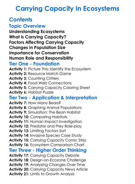Carrying Capacity In Ecosystems Worksheet Activity Booklet