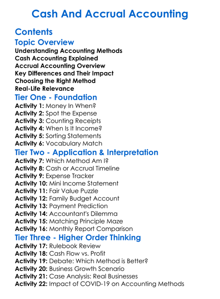 Cash And Accrual Accounting Worksheet Activity Booklet