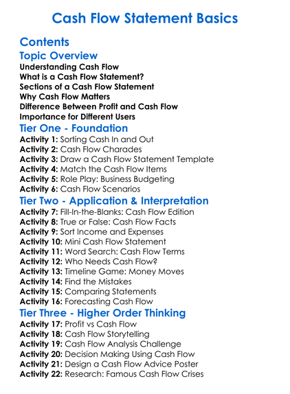Cash Flow Statement Basics Worksheet Activity Booklet