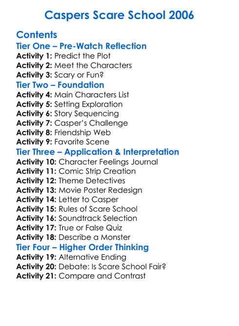 Caspers Scare School 2006 Worksheet Activity Booklet