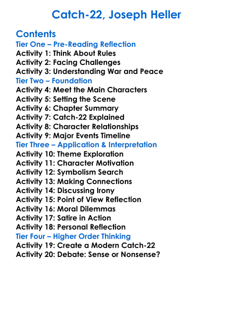 Catch-22 Joseph Heller Worksheet Activity Booklet