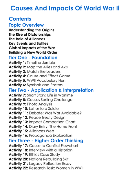 Causes And Impacts Of World War Ii Worksheet Activity Booklet