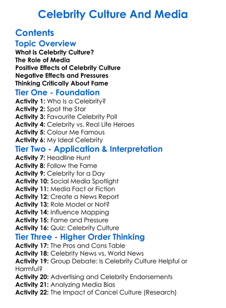 Celebrity Culture And Media Worksheet Activity Booklet