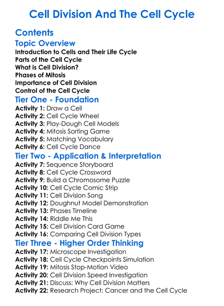 Cell Division And The Cell Cycle Worksheet Activity Booklet