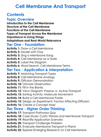 Cell Membrane And Transport Worksheet Activity Booklet
