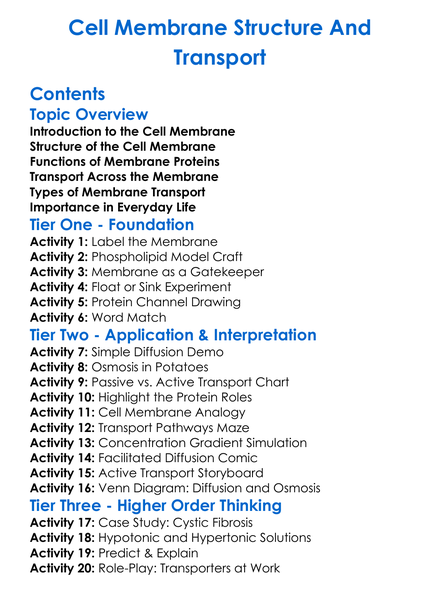 Cell Membrane Structure And Transport Worksheet Activity Booklet