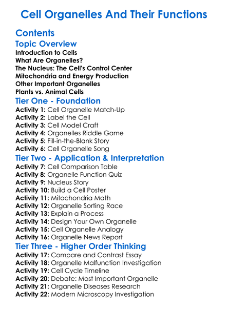 Cell Organelles And Their Functions Worksheet Activity Booklet