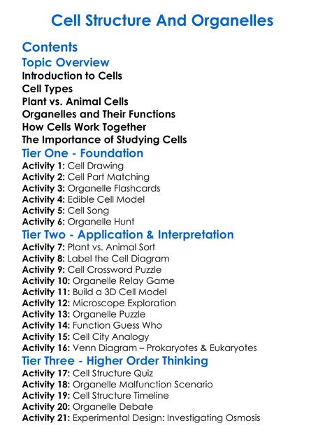 Cell Structure And Organelles Worksheet Activity Booklet