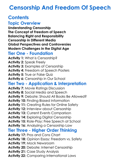 Censorship And Freedom Of Speech Worksheet Activity Booklet