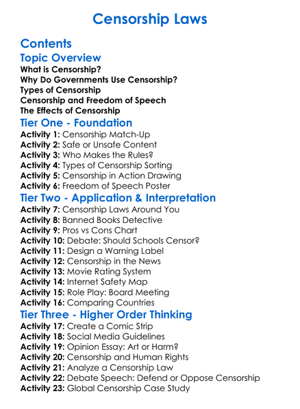 Censorship Laws Worksheet Activity Booklet
