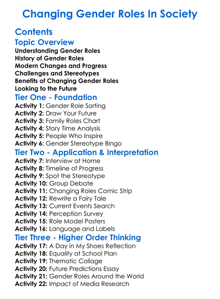 Changing Gender Roles In Society Worksheet Activity Booklet
