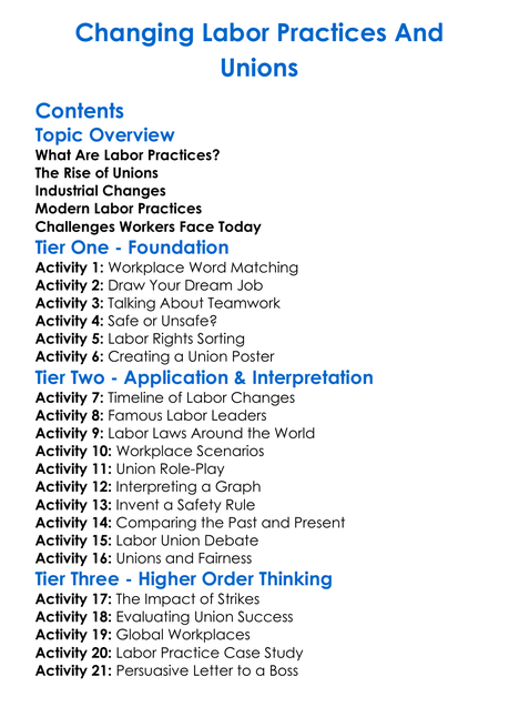 Changing Labor Practices And Unions Worksheet Activity Booklet