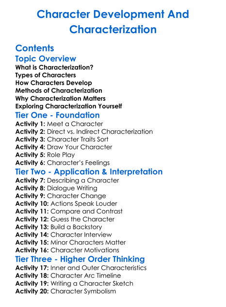 Character Development And Characterization Worksheet Activity Booklet