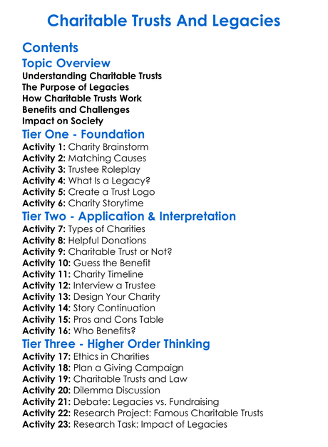 Charitable Trusts And Legacies Worksheet Activity Booklet