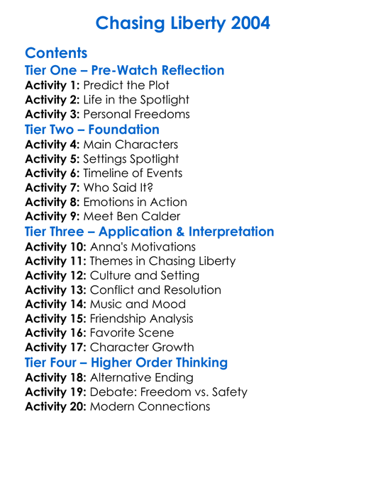 Chasing Liberty 2004 Worksheet Activity Booklet