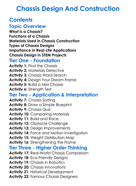 Chassis Design And Construction Worksheet Activity Booklet