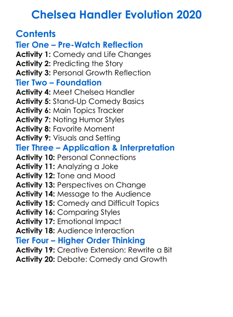 Chelsea Handler Evolution 2020 Worksheet Activity Booklet