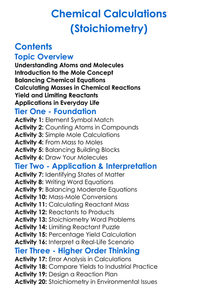 Chemical Calculations Stoichiometry Worksheet Activity Booklet