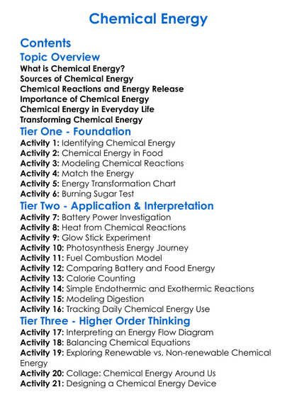 Chemical Energy Worksheet Activity Booklet