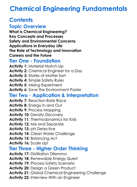 Chemical Engineering Fundamentals Worksheet Activity Booklet