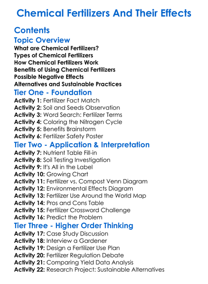 Chemical Fertilizers And Their Effects Worksheet Activity Booklet