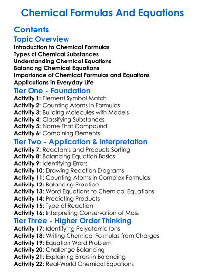 Chemical Formulas And Equations Worksheet Activity Booklet