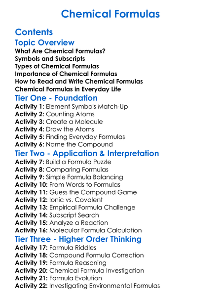 Chemical Formulas Worksheet Activity Booklet