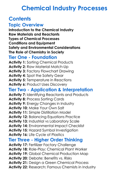Chemical Industry Processes Worksheet Activity Booklet