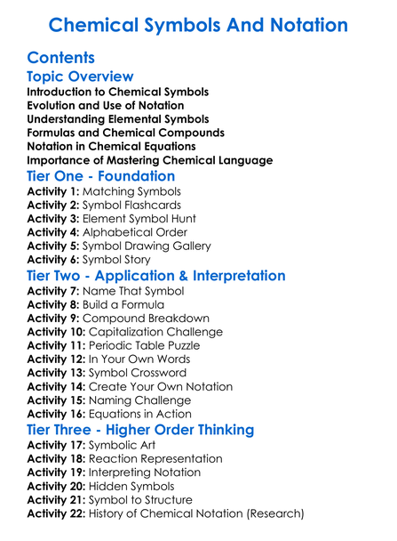Chemical Symbols And Notation Worksheet Activity Booklet