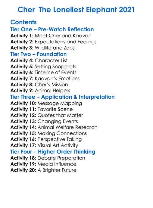 Cher The Loneliest Elephant 2021 Worksheet Activity Booklet