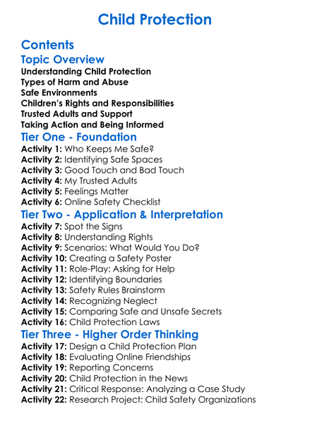 Child Protection Worksheet Activity Booklet