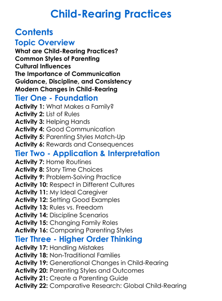 Child-Rearing Practices Worksheet Activity Booklet