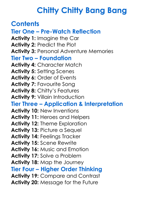 Chitty Chitty Bang Bang Worksheet Activity Booklet