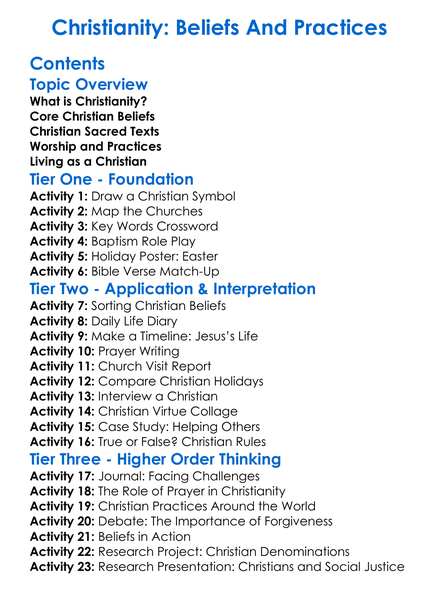 Christianity Beliefs And Practices Worksheet Activity Booklet