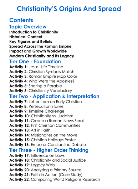 Christianitys Origins And Spread Worksheet Activity Booklet