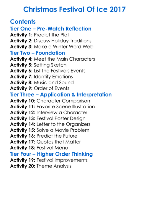 Christmas Festival Of Ice 2017 Worksheet Activity Booklet