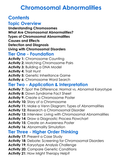 Chromosomal Abnormalities Worksheet Activity Booklet
