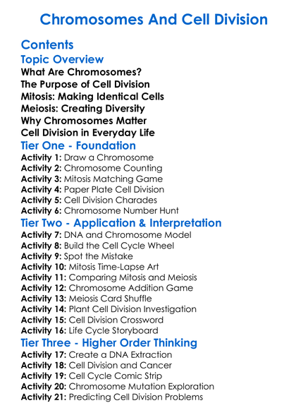 Chromosomes And Cell Division Worksheet Activity Booklet