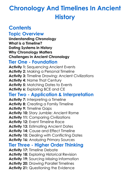 Chronology And Timelines In Ancient History Worksheet Activity Booklet
