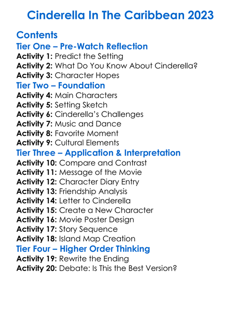 Cinderella In The Caribbean 2023 Worksheet Activity Booklet