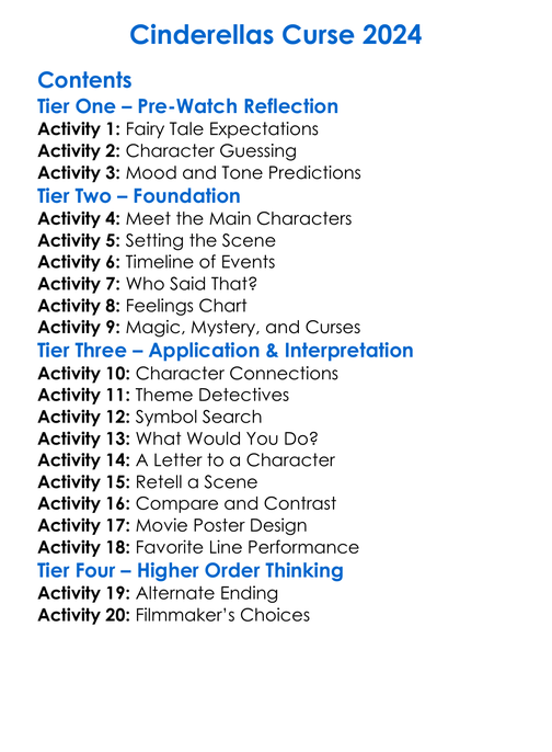 Cinderellas Curse 2024 Worksheet Activity Booklet