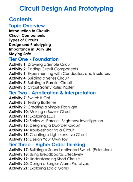 Circuit Design And Prototyping Worksheet Activity Booklet