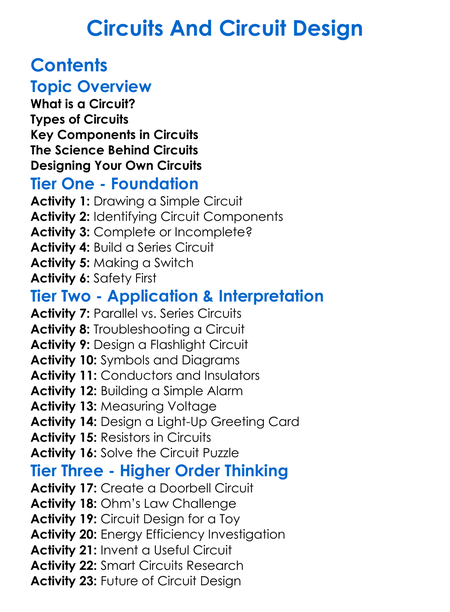Circuits And Circuit Design Worksheet Activity Booklet